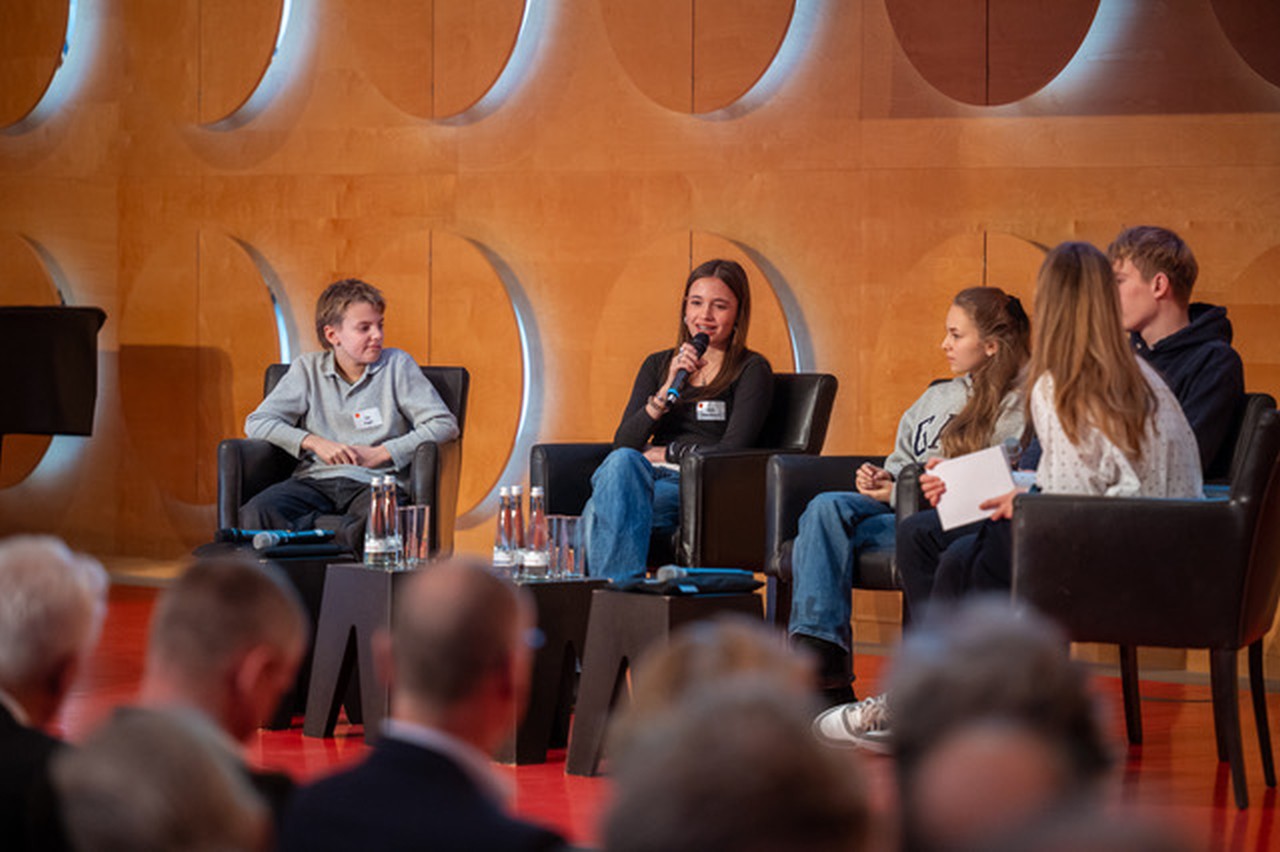Es war beeindruckend zu sehen, wie pointiert und zielgerichtet unsere Schüler ihre Wünsche und Visionen vertraten. Hilda Angersbach (15) aus dem 10. Jahrgang und Ole Engel (11) aus dem 6. Jahrgang vertraten nicht nur sich selbst, sondern als Schülervertretung eine ganze Generation. Sie machten deutlich: Junge Menschen wollen keine passiven Konsumenten von Bildung in „hübschen“ neuen Räumen sein. Sie wollen gestalten. Ole, der besonders die Freiräume im „Freien Lernen“ schätzt, und Hilda, die den Blick für das große Ganze hat, zeigten auf der Bühne, dass Partizipation keine Floskel ist, sondern der Treibstoff für echte Schulentwicklung.